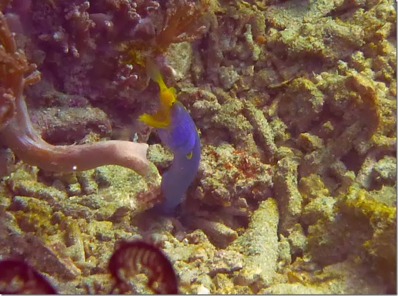 Der zweite Tauchgang, Sabang Point, entpuppte sich als schöner Korallengarten mit Nacktschnecken, bunten Fischen und auch einer Geistermuräne.